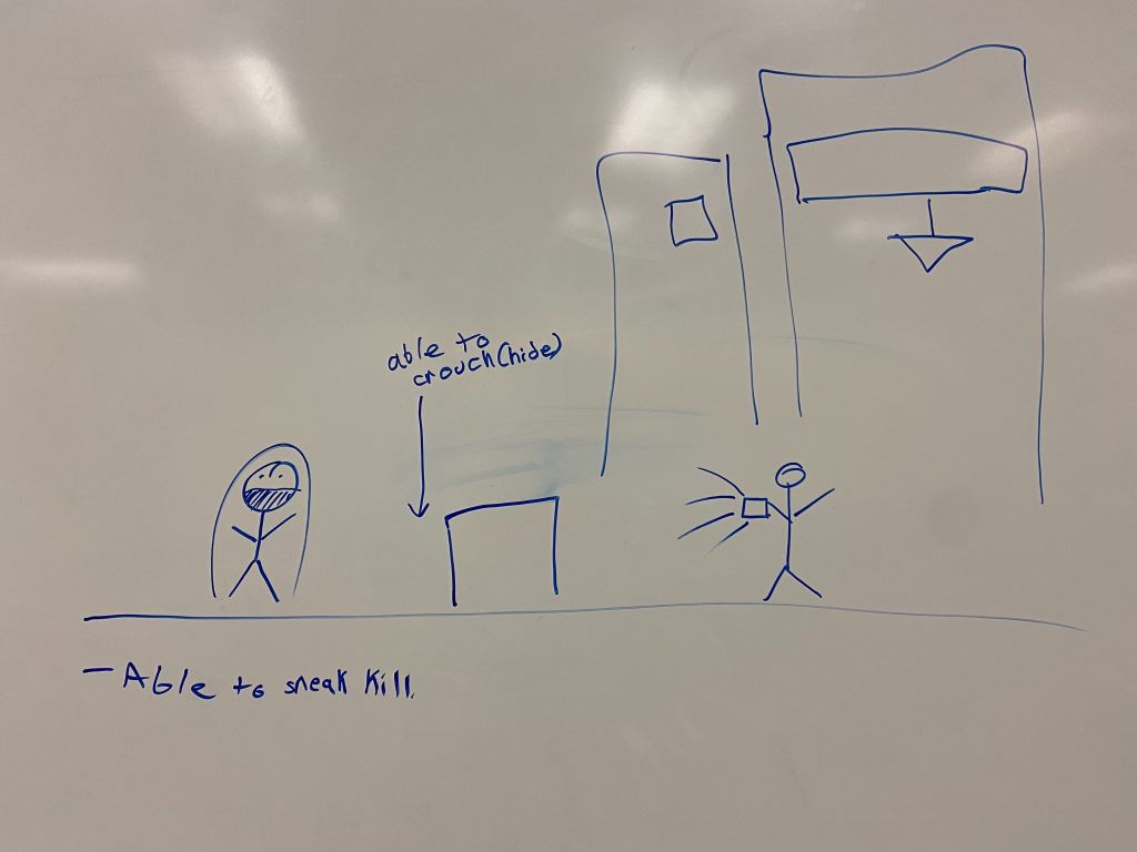 Our game is called Ominous, where you play as a ninja in a 2D pixel side scrolling platformer that relies heavily on stealthiness. Your goal is to sneak your way pasts the various guards to reach the end of the level. Our game uses A.I. to grant the enemies the ability to listen and look for you, thus you must make use of the environment to hide out of sight and your ninja skills to sneak your way without being heard. If push comes to shove, you can perform your assassinations in order to kill your enemies and continue your progression. This game is meant to be brutally hard but that what makes it fun π.